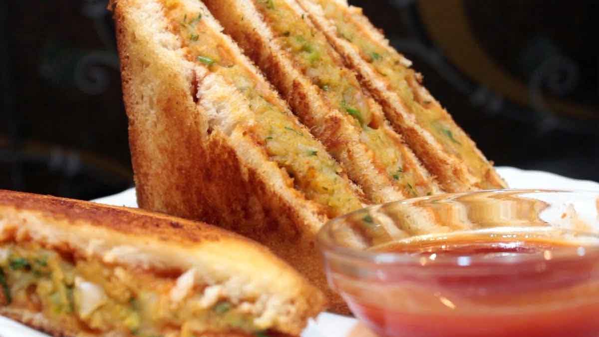 ముందుగా ఉడికించిన బంగాళాదుంపలను తురుముకోవాలి. తరువాత ఈ తురుములో ఉల్లిపాయ ముక్కలు, పచ్చిమిర్చి ముక్కలు, కొత్తిమీర, పసుపు, గరం మసాలా, చాట్ మసాలా, ఉప్పు, కారం వేసి కలపాలి. ఇప్పుడు ఒక్కో బ్రెడ్ స్లైస్ ను తీసుకుంటూ వాటికి ఒక వైపు టమాట సాస్ ను రాసి ప్లేట్ లోకి తీసుకోవాలి. తరువాత టమాట సాస్ రాసిన బ్రెబ్ స్లైస్ ను ఒక దానిని తీసుకుని దానిపై ముందుగా తయారు చేసుకున్న బంగాళాదుంప మిశ్రమాన్ని అంతటా వచ్చేలా సమానంగా ఉంచాలి. తరువాత దానిపై టమాట కిచప్ రాసిన వైపు కిందికి వచ్చేలా మరో బ్రెడ్ స్టైస్ ను ఉంచాలి. ఇలా అన్నింటిని తయారు చేసుకున్న తరువాత స్టవ్ మీద పెన్నాన్ని ఉంచి బటర్ వేసి వేడి చేయాలి.