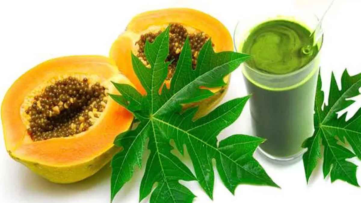 బొప్పాయి ఆకుల్లో ప్రోటీన్స్, విటమిన్స్, మినరల్స్ తోపాటు మన శరీరానికి అవసరమయ్యే ఇతర పోషకాలు కూడా ఉంటాయి. తరచూ బొప్పాయి ఆకుల రసాన్ని తాగడం వల్ల జీర్ణ వ్యవస్థ పనితీరు మెరుగుపడి మలబద్దకం సమస్య తగ్గుతుంది. ఈ రసాన్ని తాగడం వల్ల శరీరంలో రోగనిరోధక శక్తి పెరిగి వ్యాధుల బారిన పడకుండా ఉంటాం. షుగర్ వ్యాధితో బాధపడే వారు తరచూ బొప్పాయి ఆకుల రసాన్ని తీసుకోవడం వల్ల రక్తంలో చక్కెర స్థాయిలు నియంత్రణలో ఉంటాయి.