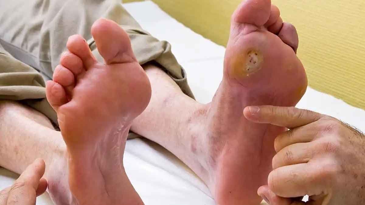 సాధారణంగా రక్తంలో షుగర్ లెవల్స్ ఎక్కువగా ఉన్నపుడు అది కిడ్నీలు, లివర్ పై ఎక్కువగా ప్రభావం చూపుతుంది. కానీ అది మన పాదాలకు కూడా వివిధ రకాల సమస్యలు ఉత్పన్నమవడానికి కారణం అవుతుందని మనలో చాలా మందికి తెలియదు. రక్తంలో ఉండే అధిక షుగర్ లెవల్స్ వలన నరాల సమస్యలు వచ్చే ఆస్కారం ఉంటుంది. అలాగే రక్త ప్రసరణలో ఇబ్బందులు, పాదాలపై పుండ్లు ఏర్పడటం, పాదాలు మొద్దుబారడం లాంటివి జరుగుతాయి. ఈ డయాబెటిస్ అనేది పాదాలకు జరిగే రక్త ప్రసరణను తగ్గించి నరాలను డ్యామేజ్ చేయడం వలన పాదాలు స్పర్శను కోల్పోతాయి. స్పర్శ లేకపోవడం వలన పాదాలకు చిన్న గాయం అయినప్పటికీ అది చాలా తీవ్రంగా మారే అవకాశం ఉంటుంది. దీనినే వైద్య భాషలో డయాబెటిక్ న్యూరోపతి అని పిలుస్తారు.