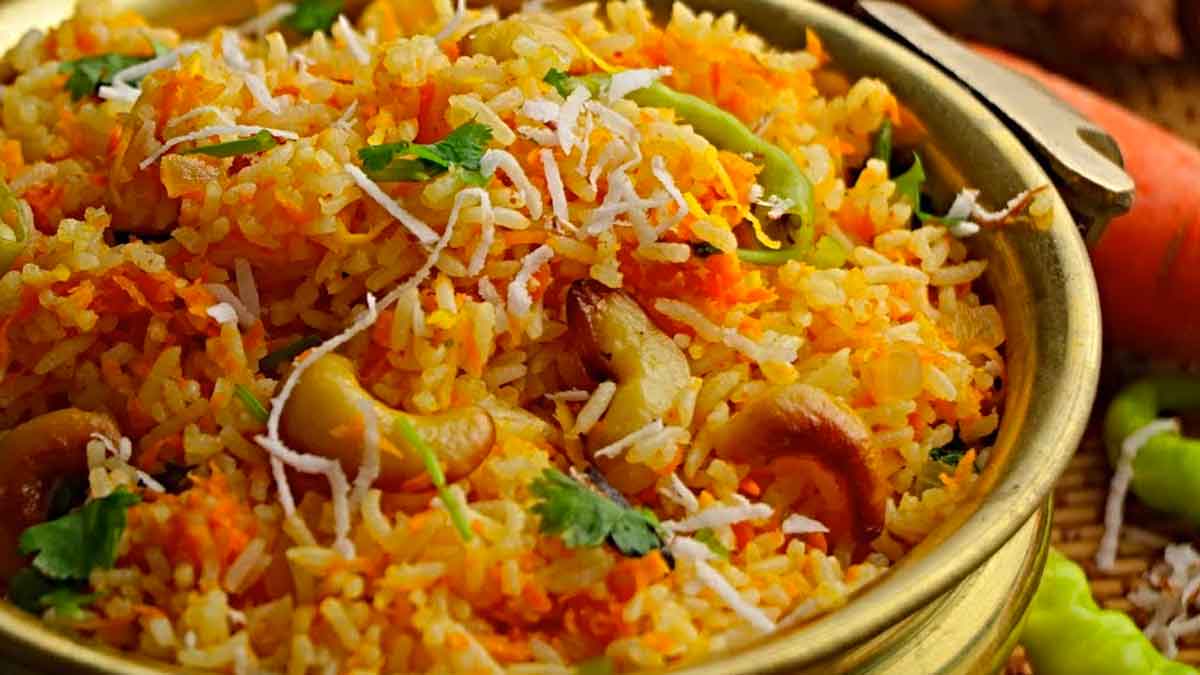 నూనె – పావు కప్పు, దాల్చిన చెక్క – 2 ఇంచుల ముక్క, బిర్యానీ ఆకులు – 2, లవంగాలు – 5, యాలకులు – 5, జీడిపప్పు – 15, తరిగిన ఉల్లిపాయ – 1, తరిగిన పచ్చిమిర్చి – 2, కరివేపాకు – ఒక రెమ్మ, క్యారెట్ తురుము – ఒక కప్పు, ఉప్పు – తగినంత, సాంబార్ పొడి – ఒక టీస్పూన్, అన్నం – ఒక కప్పు బియ్యంతో వండినంత, పచ్చికొబ్బరి తురుము – 2 టేబుల్ స్పూన్స్, నిమ్మరసం – అర చెక్క, కొత్తిమీర – కొద్దిగా.