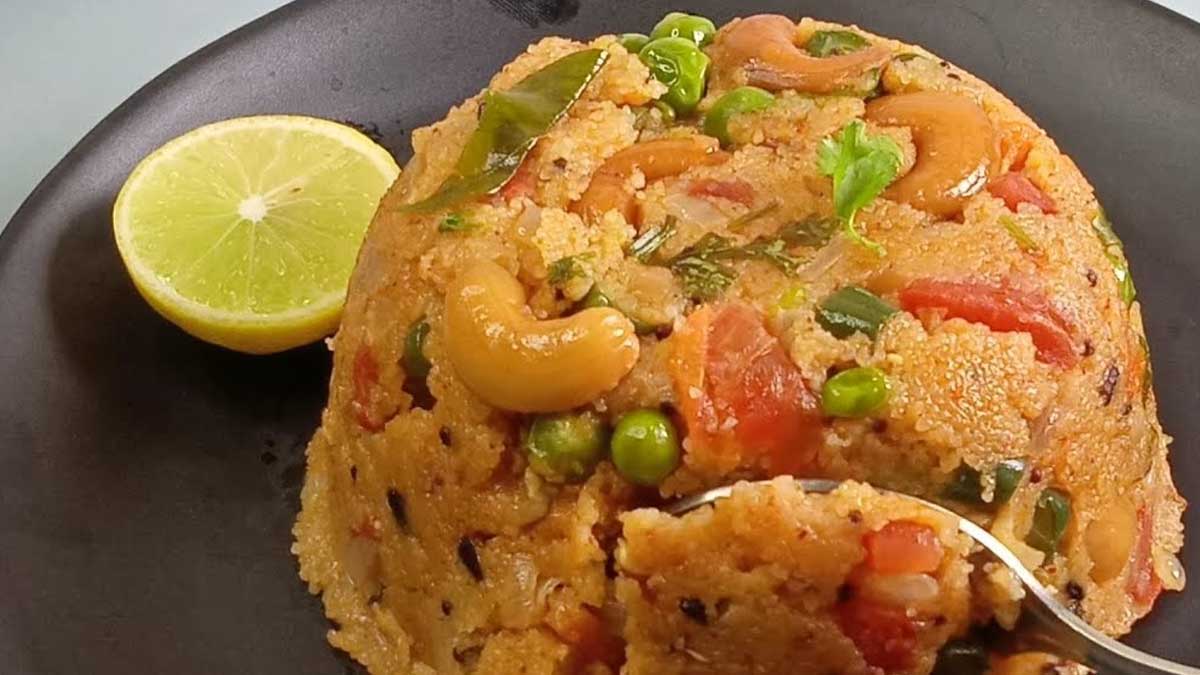 నెయ్యి – ఒక టేబుల్ స్పూన్, రవ్వ- ఒక కప్పు, నూనె – 2 టేబుల్ స్పూన్స్, తాళింపు దినుసులు – ఒక టేబుల్ స్పూన్, ఎండుమిర్చి – 1, జీడిపప్పు – కొద్దిగా, అల్లం తరుగు -ఒక టీ స్పూన్, తరిగిన ఉల్లిపాయ – 1, కరివేపాకు – ఒక రెమ్మ, తరిగిన పచ్చిమిర్చి – 2, పచ్చి బఠాణీ – 2 టేబుల్ స్పూన్స్, తరిగిన క్యారెట్ – 1, తరిగిన బీన్స్ – 3, తరిగిన టమాట – 1, ఉప్పు – తగినంత, పసుపు – చిటికెడు, తరిగిన కొత్తిమీర – కొద్దిగా.