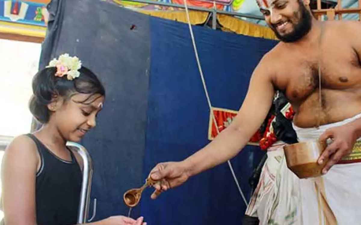 Theertham : తీర్థం తీసుకున్న అనంతరం చేతులను తలకు తుడుచుకోవాలా..?